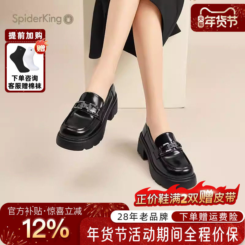 蜘蛛王女鞋官方旗舰店正品2025夏新款单鞋学院风小皮鞋乐福鞋圆头