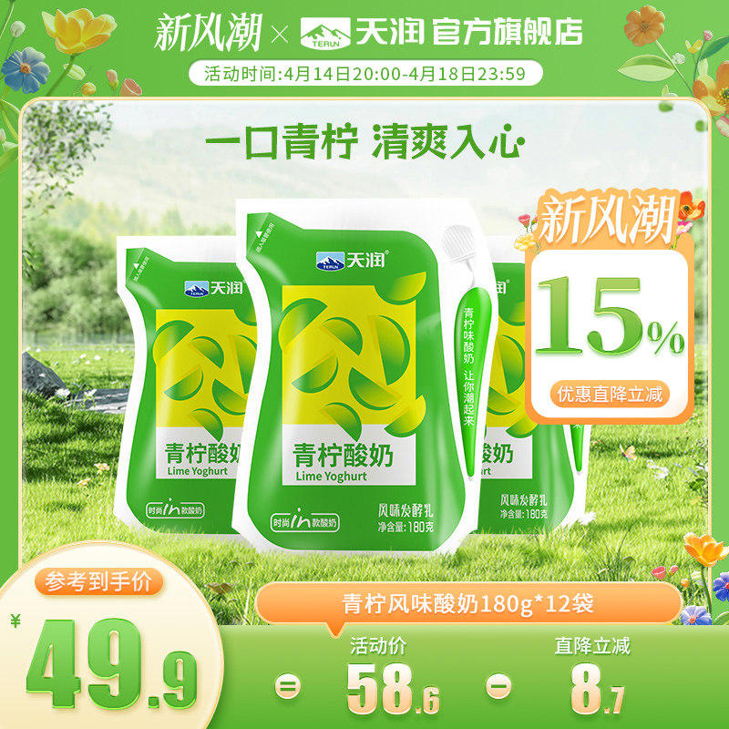 现货日期新 天润酸奶青柠新疆浓缩酸牛奶180gx12袋整箱网红奶包邮
