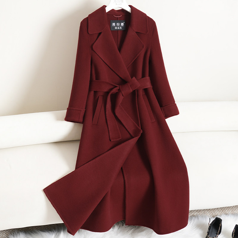 安可拉红双面羊绒大衣女中长款修身显瘦2025秋冬新款羊毛呢外套