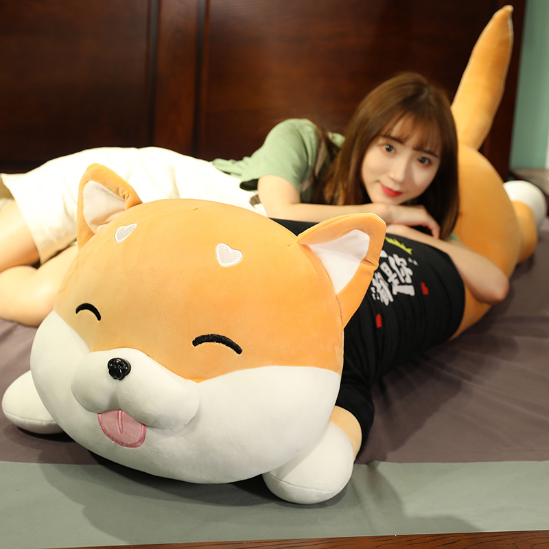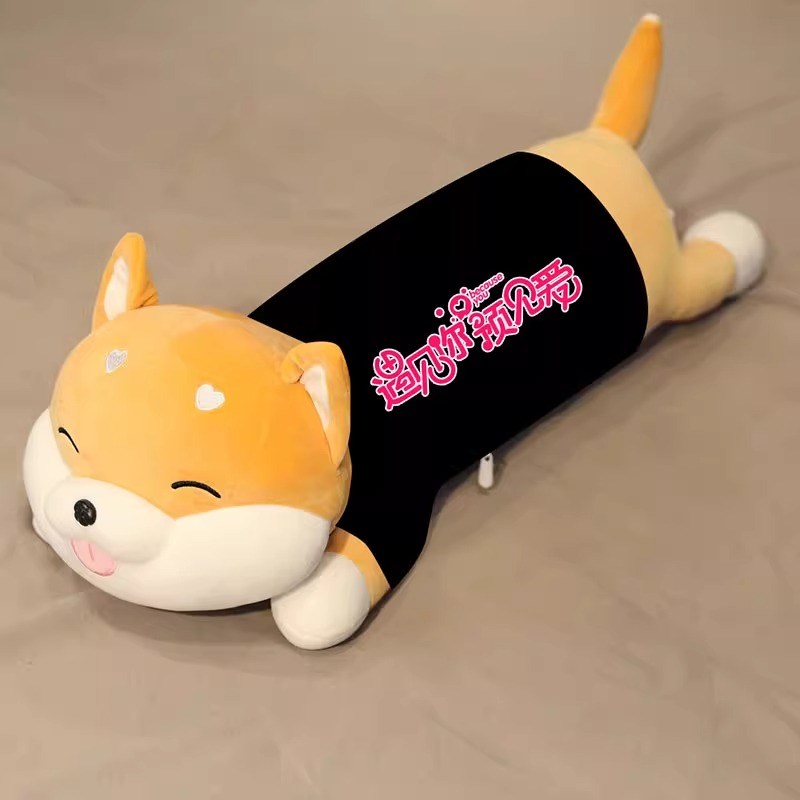 英贝萌可爱狗狗玩偶公仔毛绒玩具柴犬抱枕睡觉长条趴睡枕生日礼物