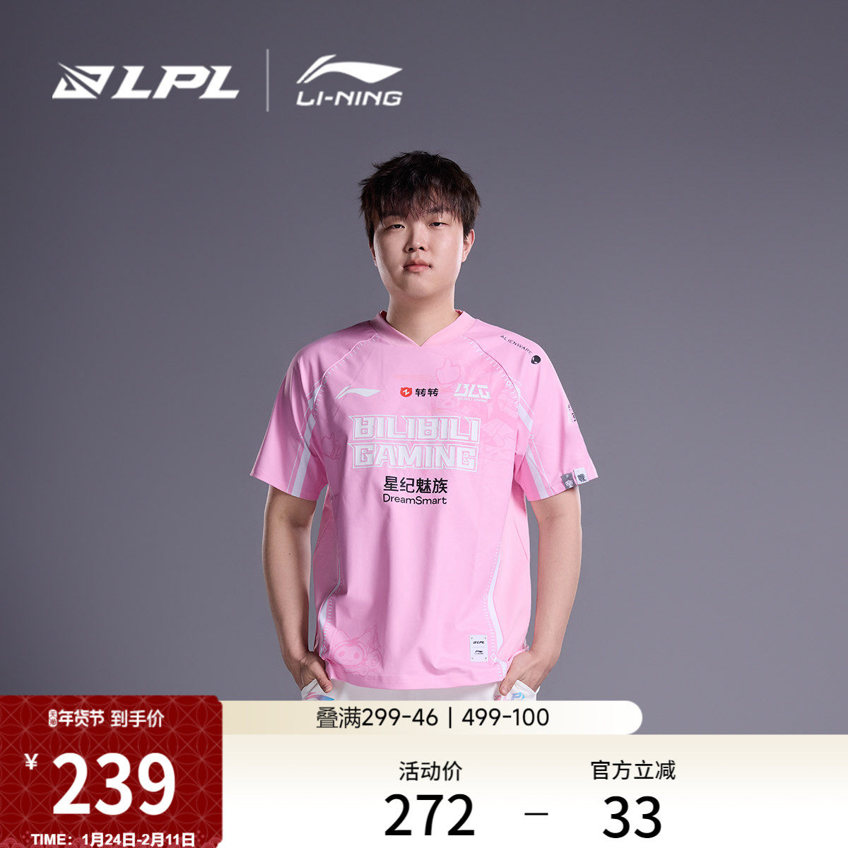 李宁LPL 官方赛季BLG战队炫彩队服短袖T恤男女同款潮流V领运动服
