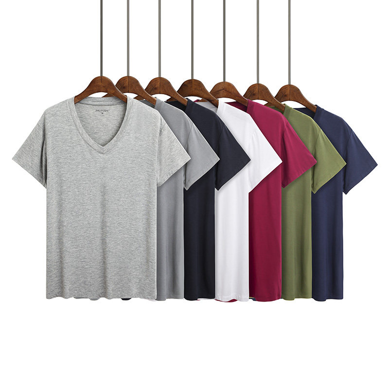 男士莫代尔居家短袖t恤青年纯色v领宽松打底衫薄款运动半袖汗衫夏