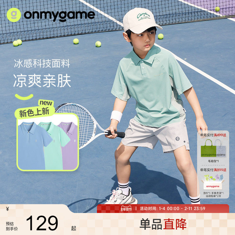 onmygame 男童短袖POLO衫儿童网球运动T恤夏季凉感透气V领上衣