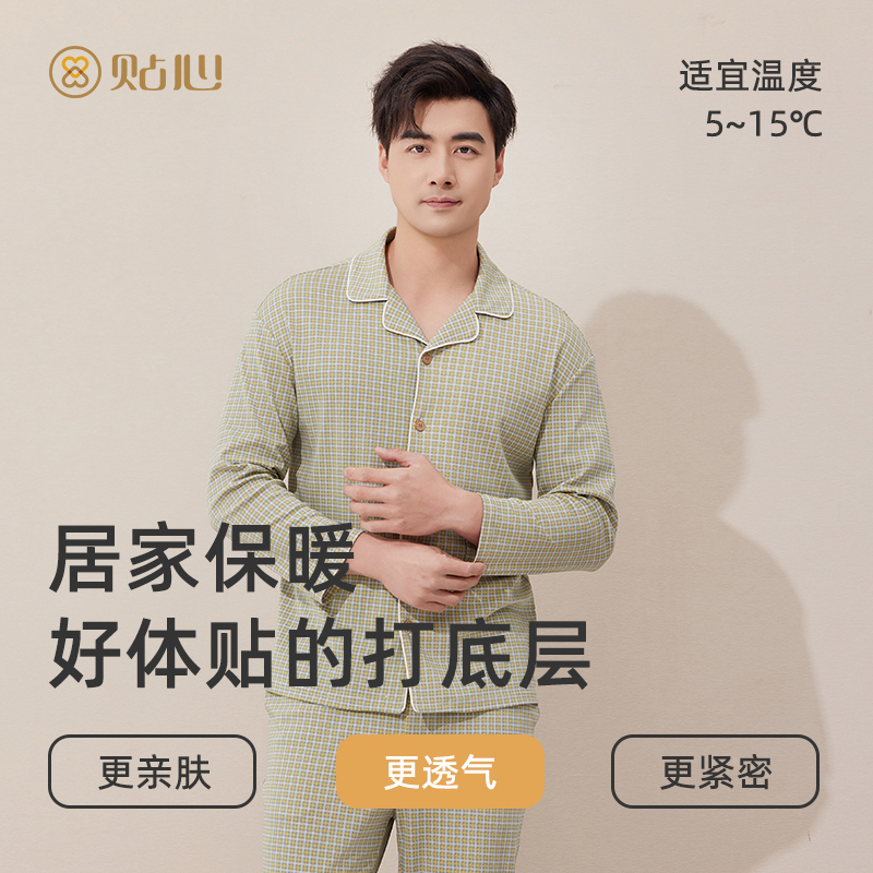 贴心男士精梳棉家居服套装秋冬季新款睡衣睡裤大码休闲居家服1687