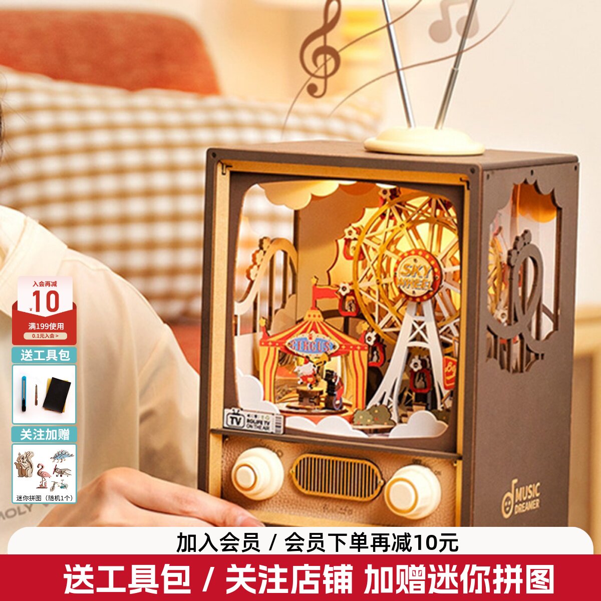 rolife若来日落游乐园音乐盒八音盒旋转摩天轮diy手工三八节礼物