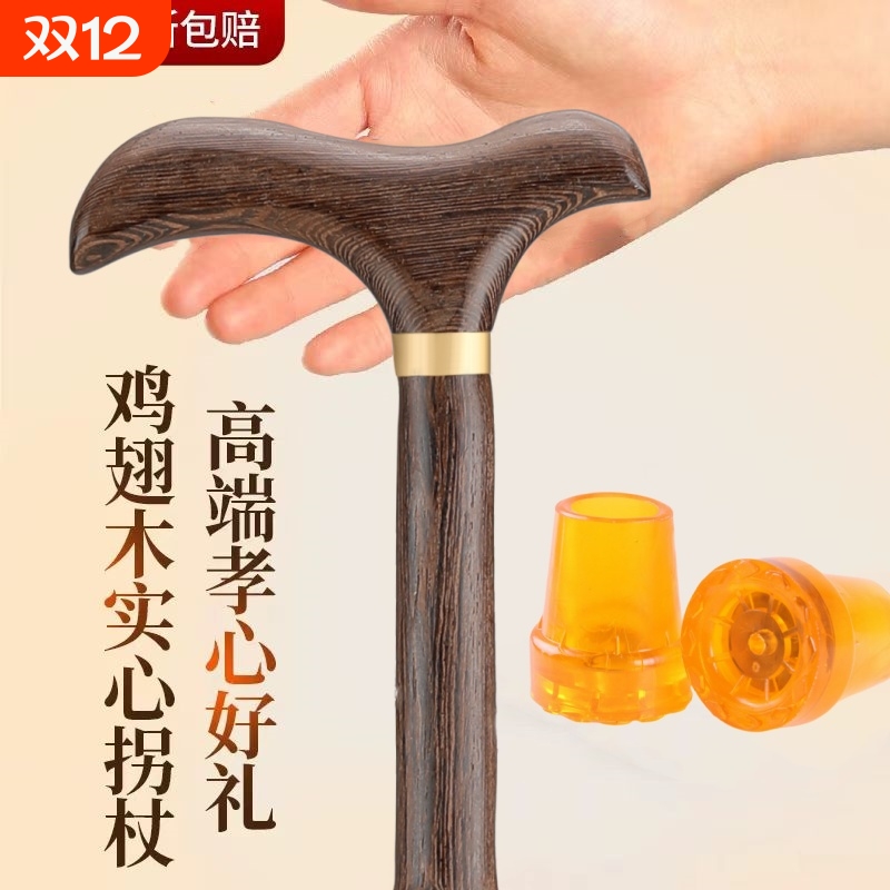 鸡翅木拐杖老人防滑拐棍实木四脚轻便木质手杖老年人红木拐杖手杖