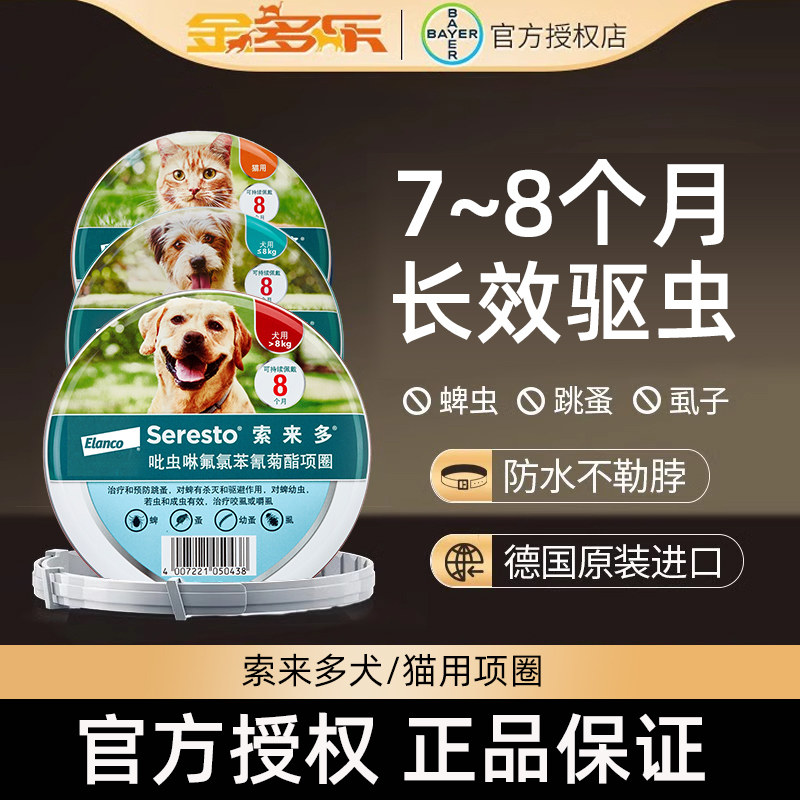 进口拜宠清索来多驱虫项圈礼蓝猫咪狗狗宠物除蜱虫防跳蚤虱子内外