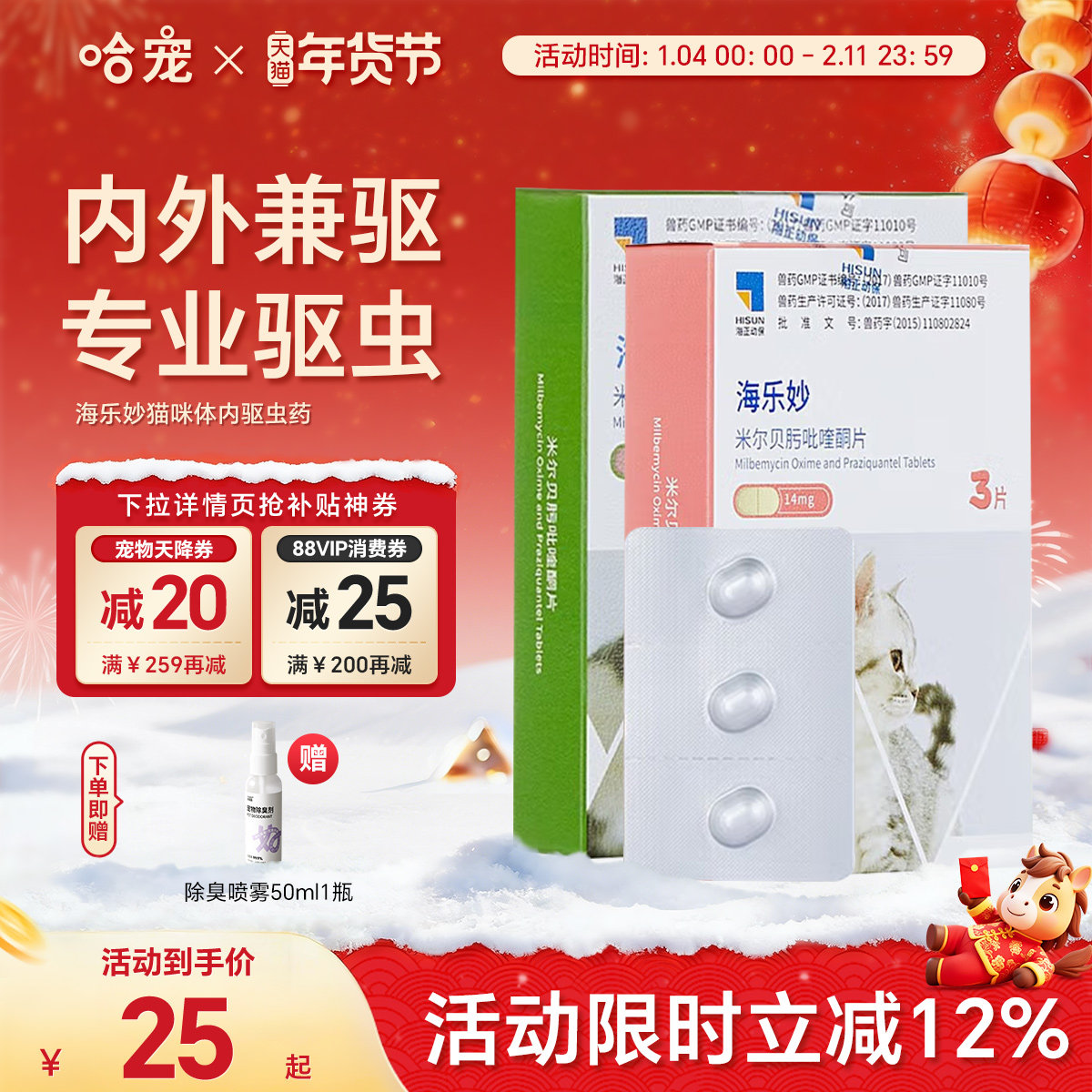 海乐妙猫咪体内外药蛔虫成猫宠物除跳蚤驱虫药猫打虫内外同驱驱虫