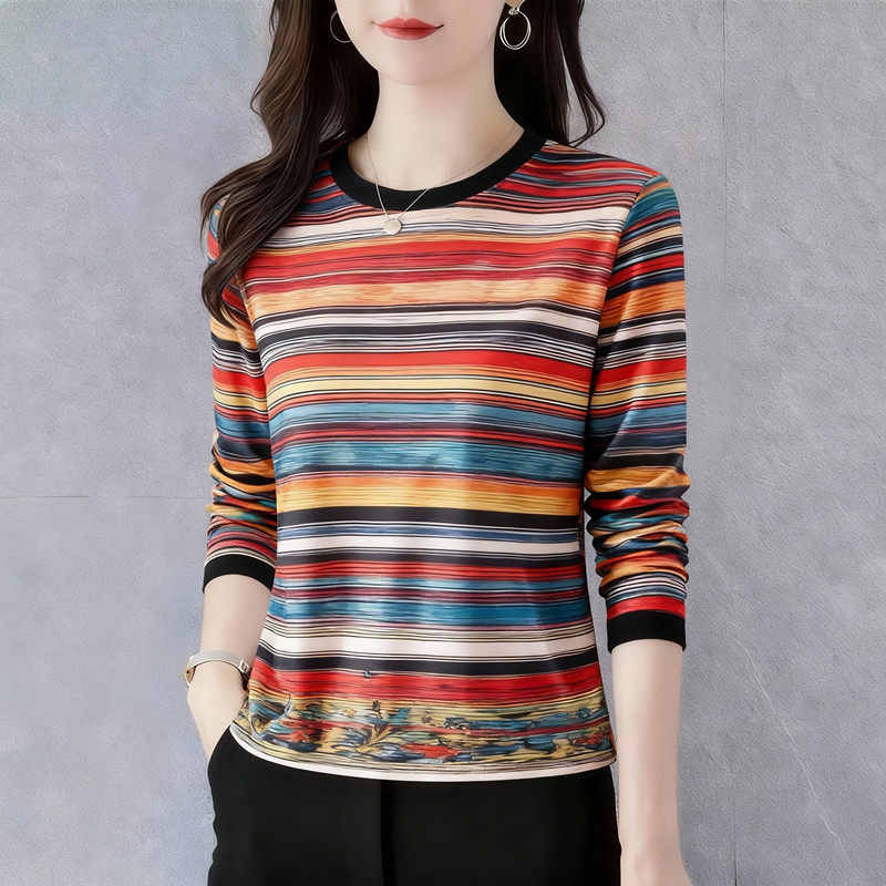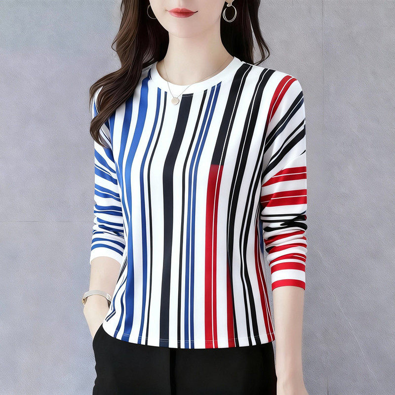 春秋季新款妈妈打底衫长袖t恤女装宽松大码纯棉上衣条纹外穿秋衣