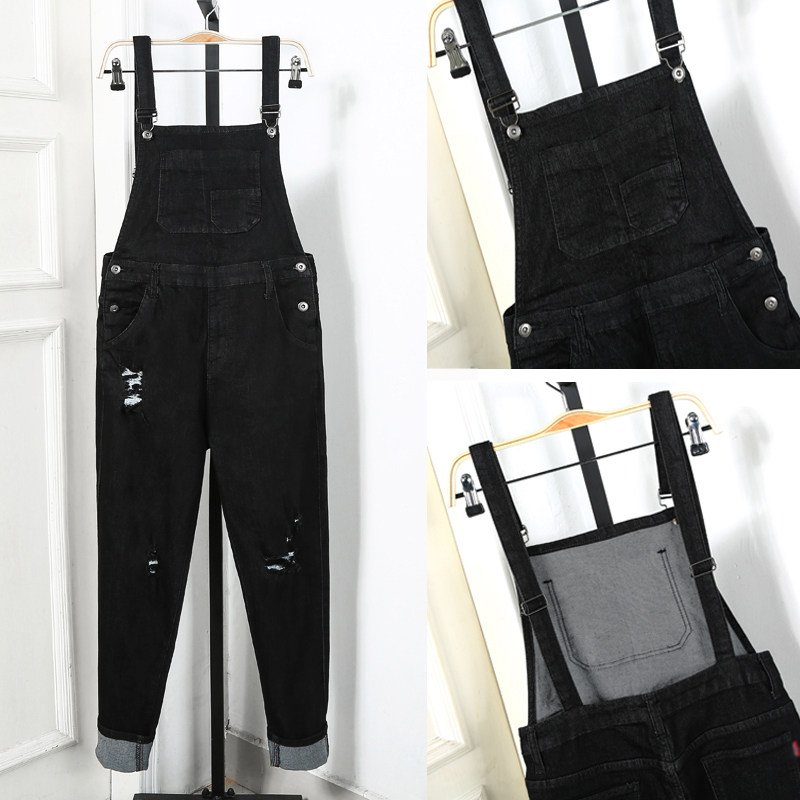- 破洞牛仔背带裤女