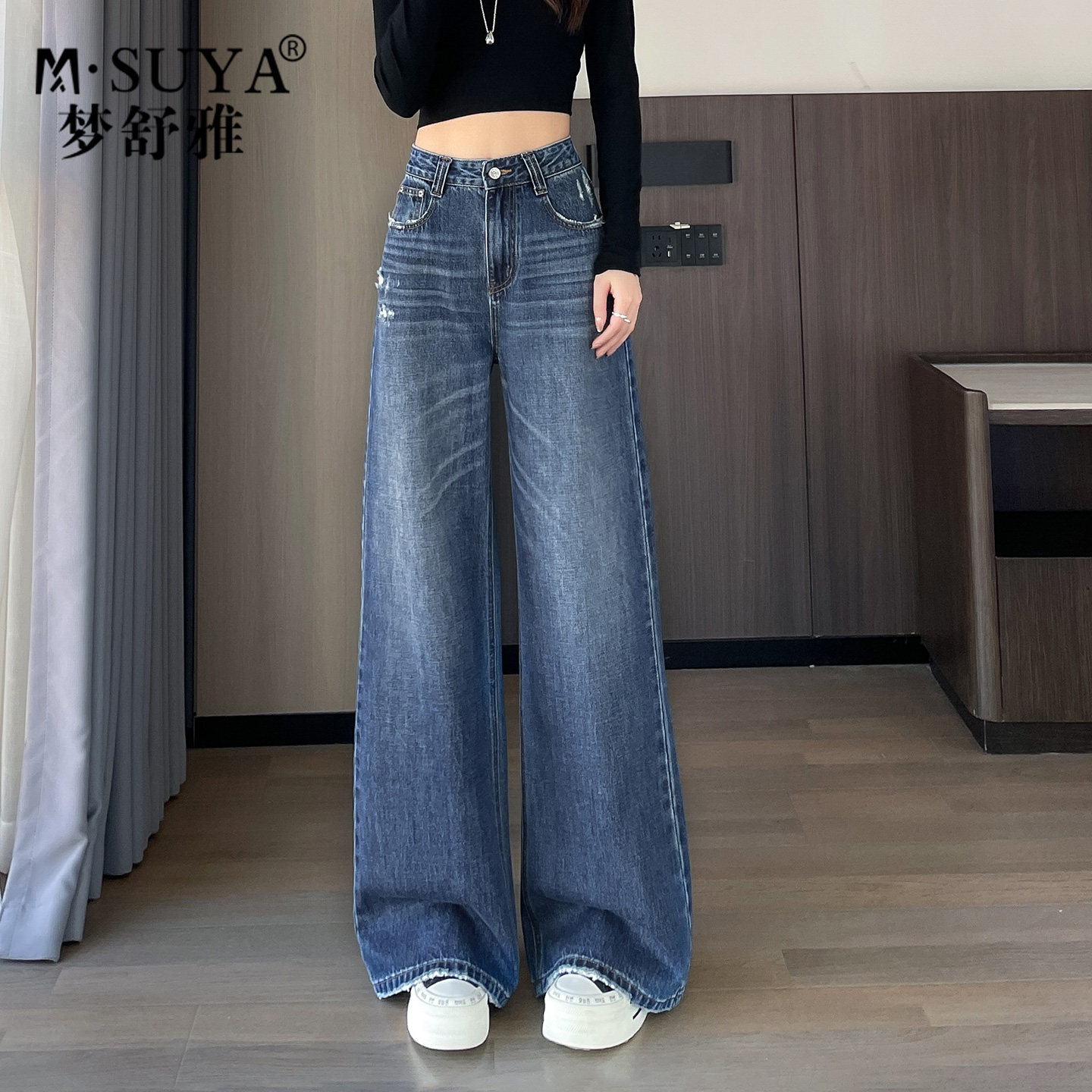 - 韩国阔腿牛仔裤