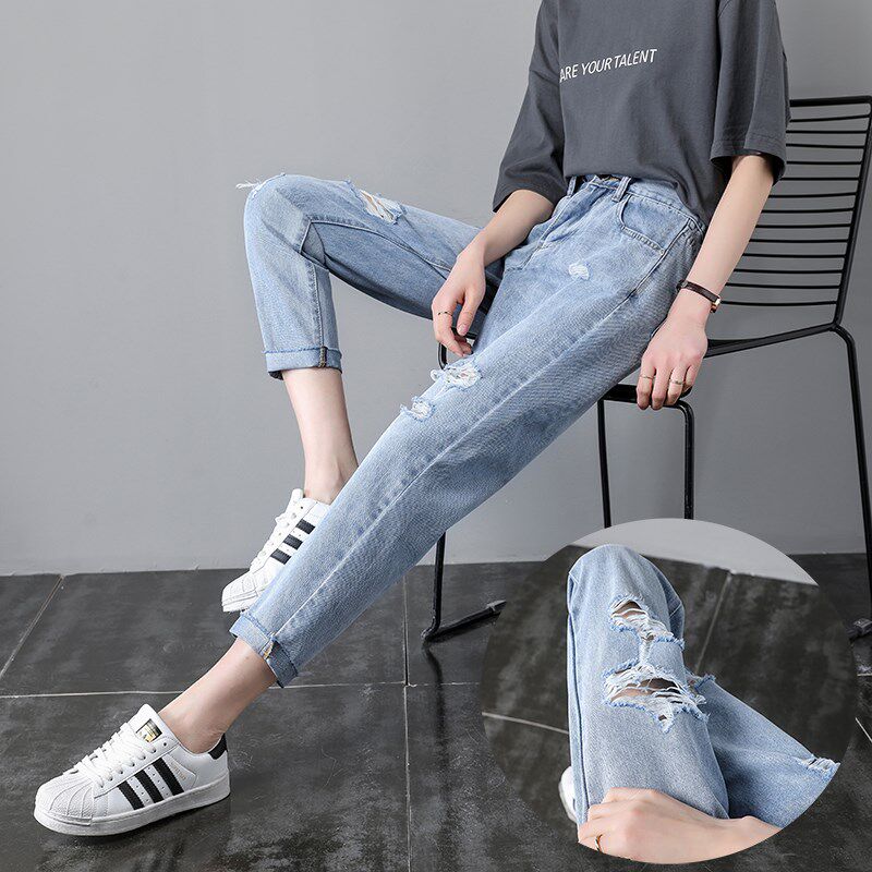 - 破洞牛仔裤女 九分裤