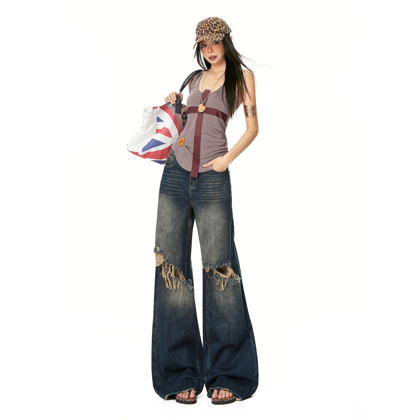 - 破洞宽松牛仔裤女