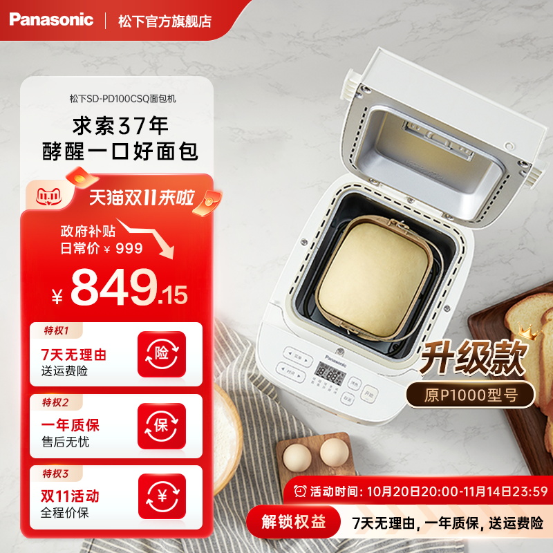 松下面包机家用全自动智能揉面多功能和面机肉松发酵PD100早餐机