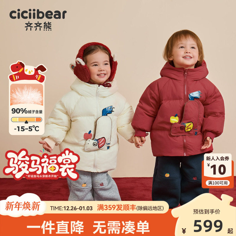 [骏马福裳三防]齐齐熊宝宝羽绒服男女童冬款加厚保暖儿童新年外套
