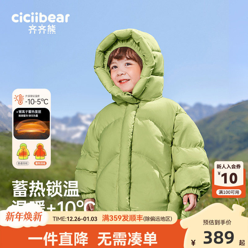 [小暖盾95绒]齐齐熊宝宝羽绒服男女童冬装三防加厚保暖新年面包服