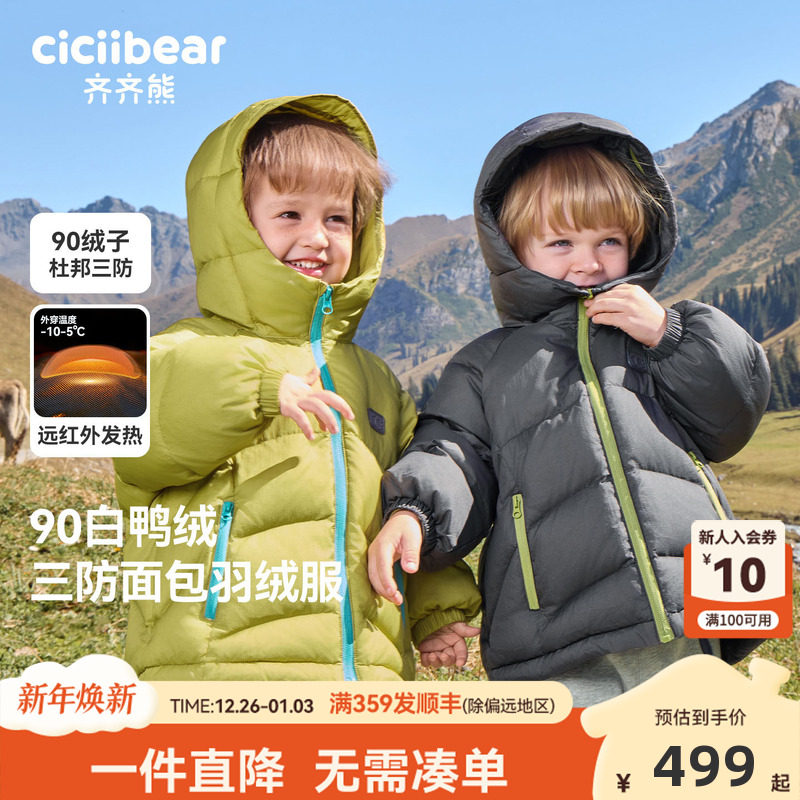 [三防90绒子]齐齐熊宝宝羽绒服男童冬装外套2025新款儿童加厚保暖