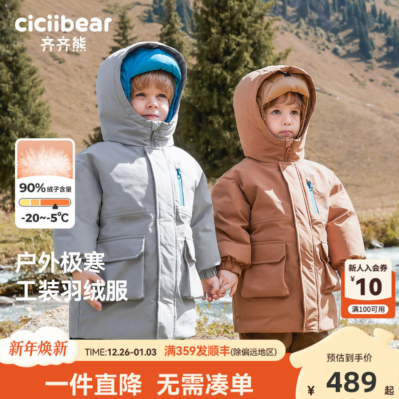 [极寒工装三防]齐齐熊宝宝羽绒服男童冬装加厚外套儿童户外保暖衣