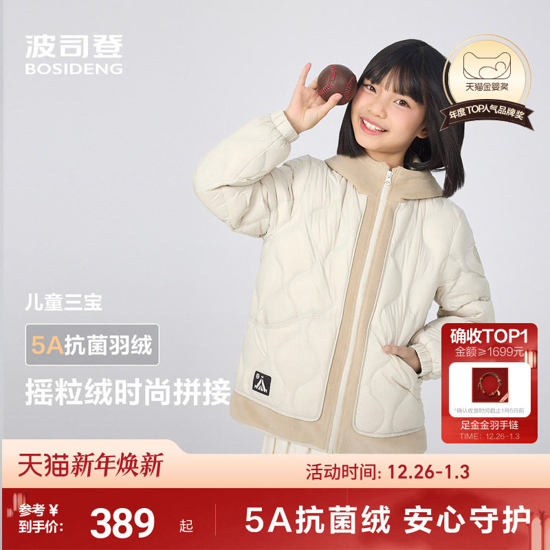 波司登儿童羽绒服女童摇粒绒羽绒外套5A抗菌绒宝宝羽绒服男女同款