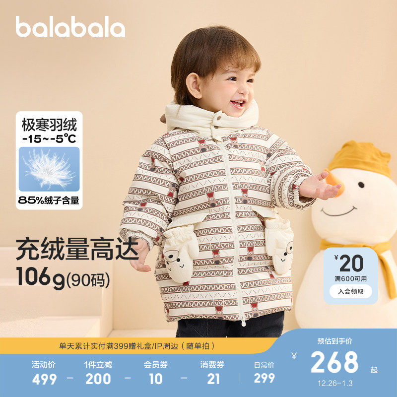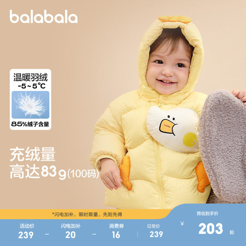 巴拉巴拉宝宝羽绒服男女童秋冬外套户外保暖潮流时尚软萌可爱活泼