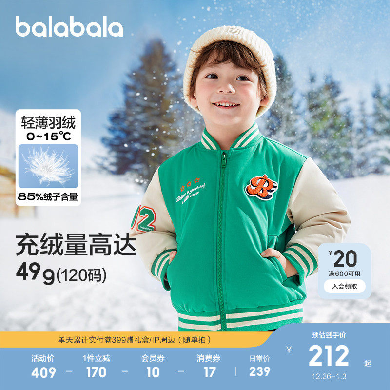 巴拉巴拉童装宝宝羽绒服男童棒球服初秋外套学院风加厚保暖上衣潮