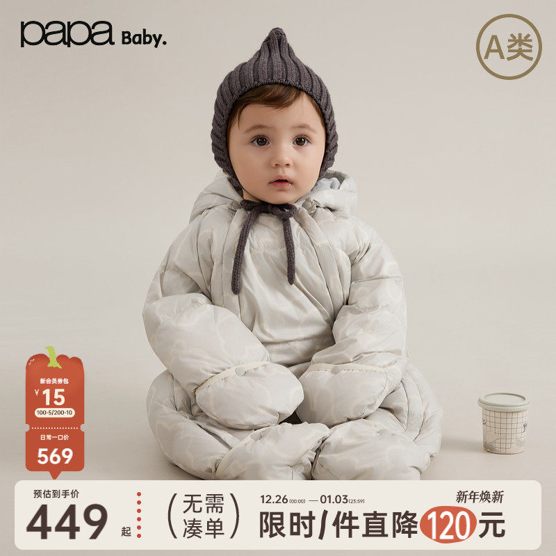 【新品】papa爬爬冬季新品宝宝羽绒服男女宝加厚保暖肤感连体衣