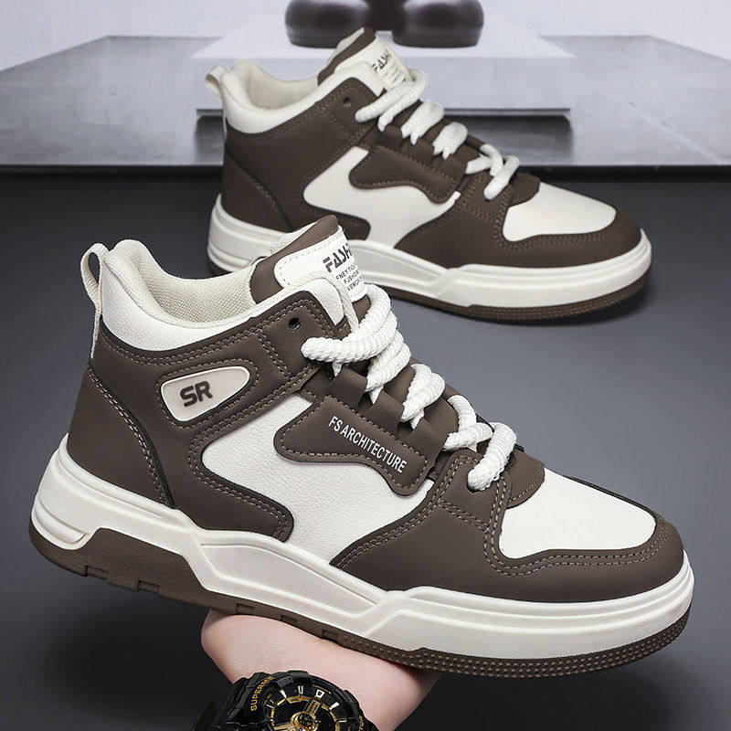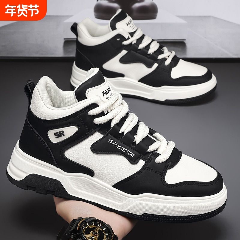 男鞋高帮板鞋2025秋冬新款皮面防水韩版百搭软底舒适学生运动潮鞋
