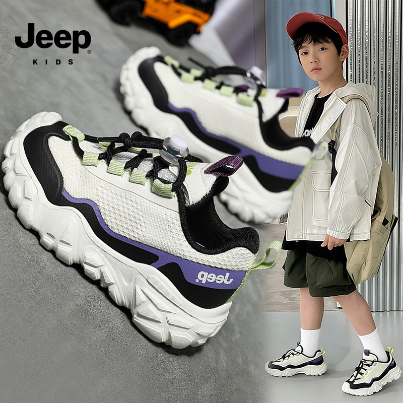 Jeep男童网面小白鞋春季软底时尚百搭儿童老爹鞋防滑学生运动潮鞋