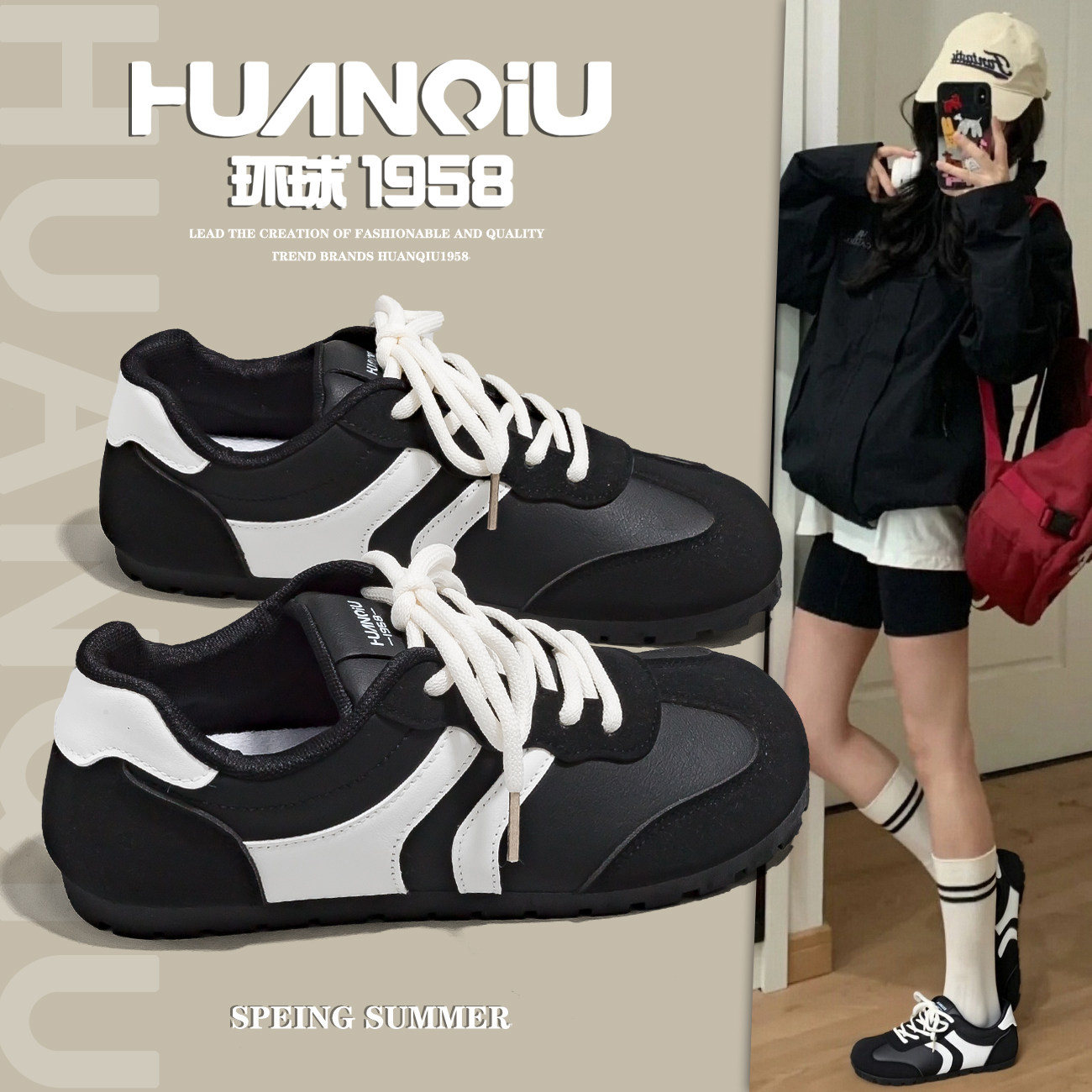 环球简约复古黑色德训鞋女2026春季新款百搭轻便软底学生运动潮鞋