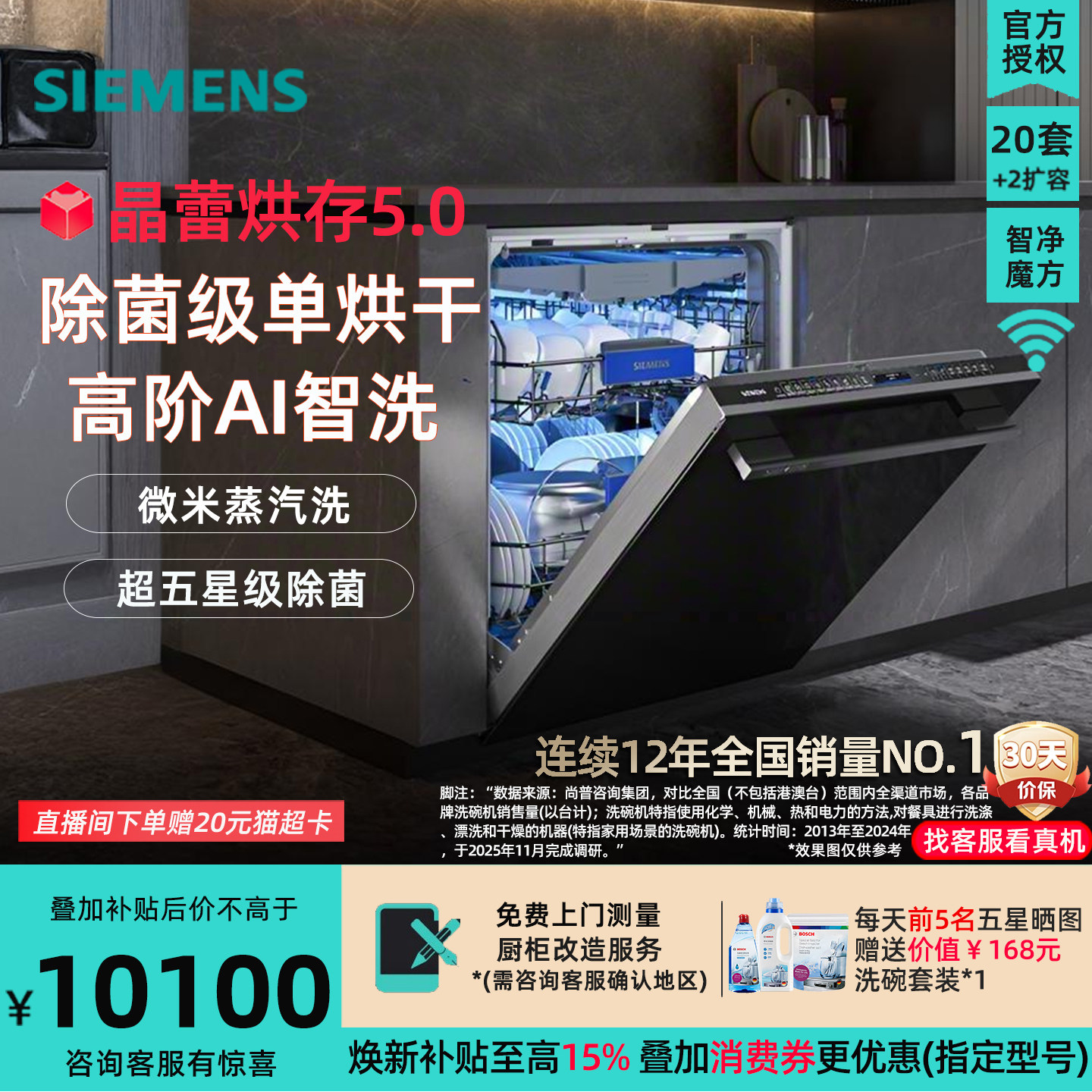 西门子智净魔方20套大容量嵌入式洗碗机晶蕾除菌大容量家用65Z