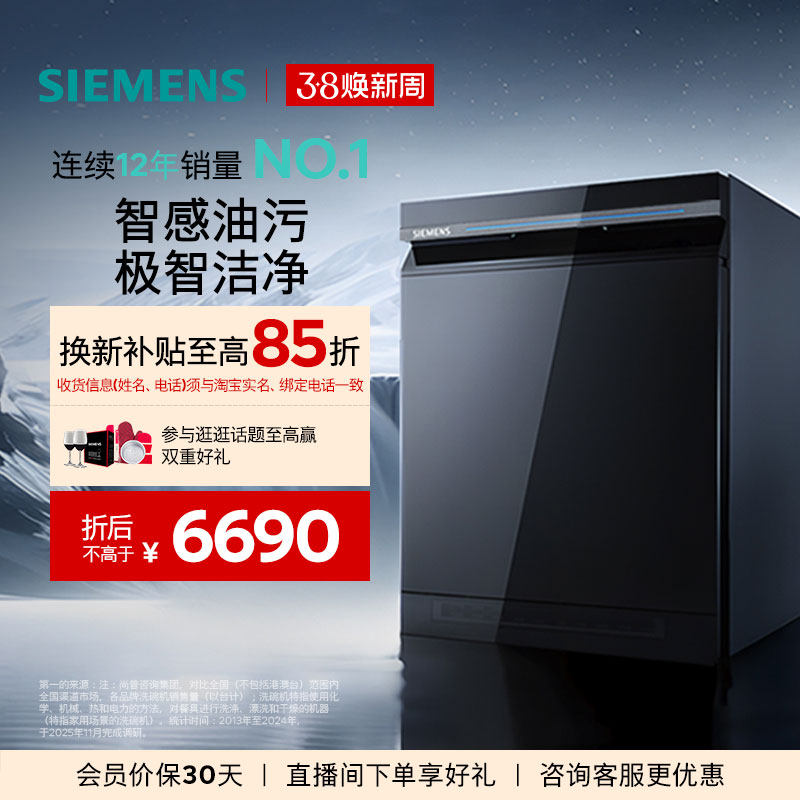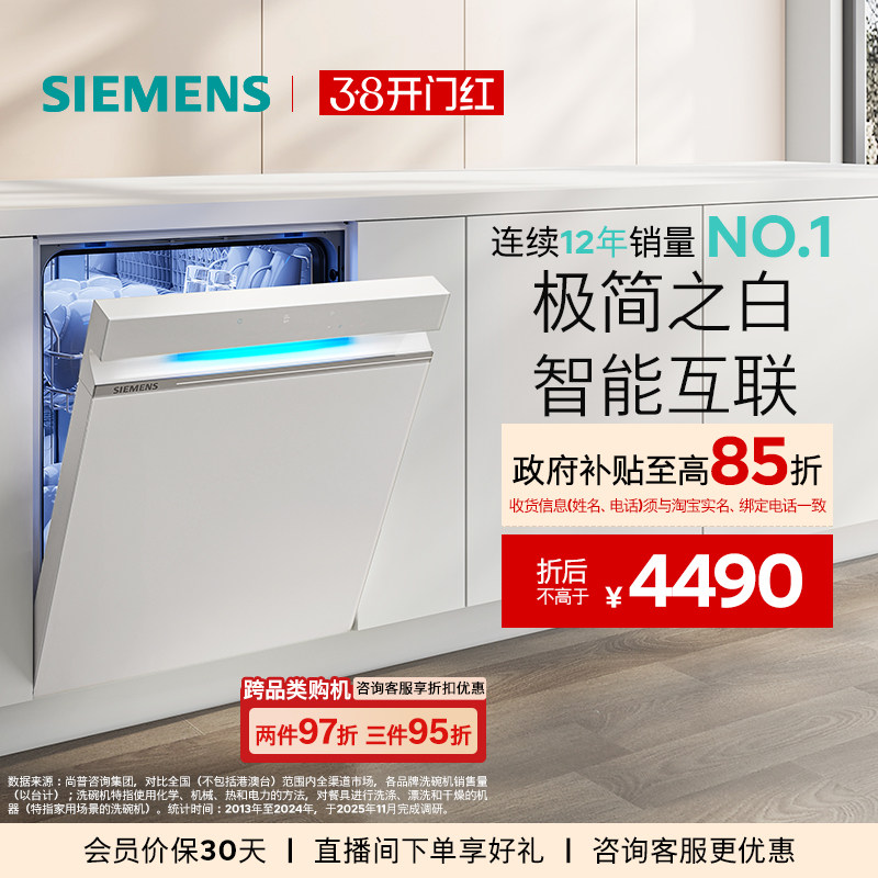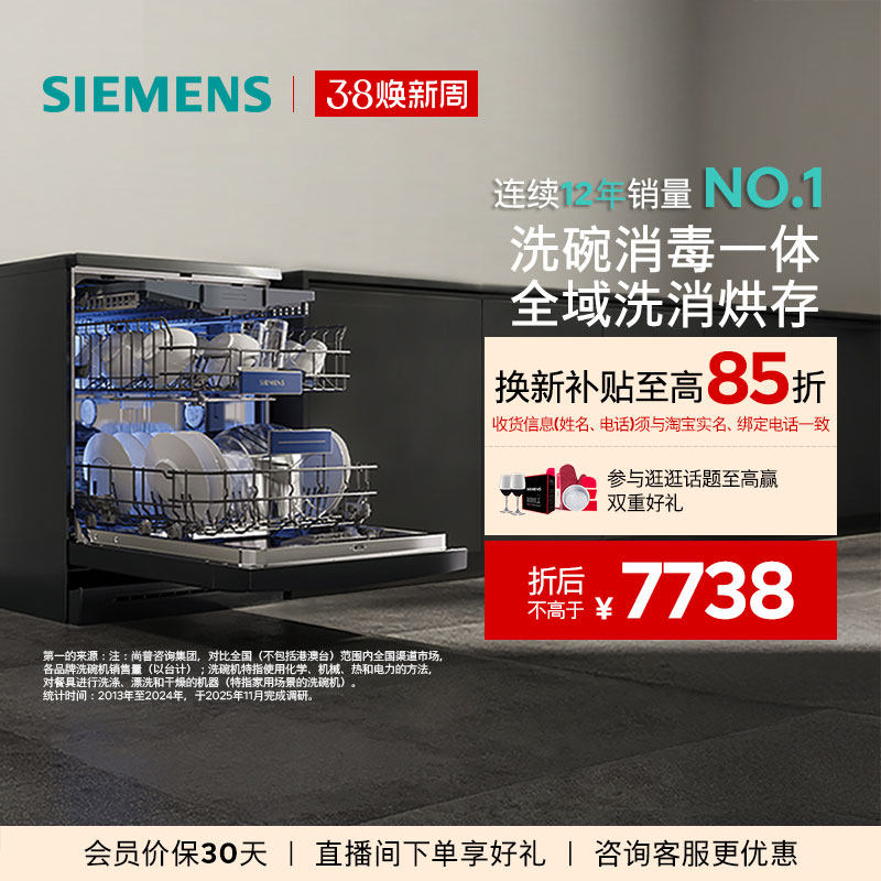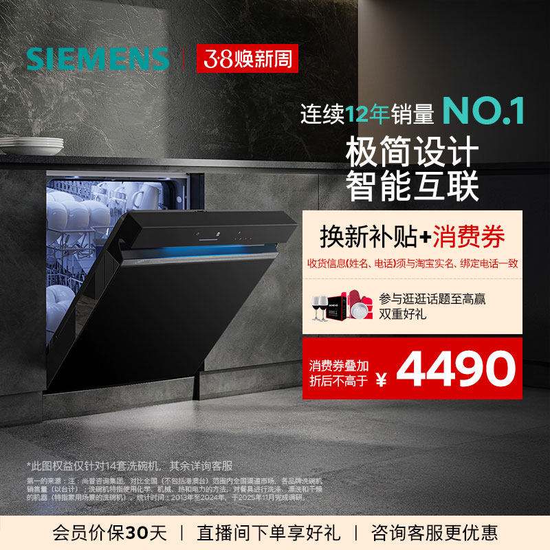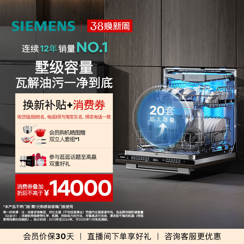 【李佳琦直播间时尚节】西门子极净魔盒3.0嵌入式洗碗机AI净洗