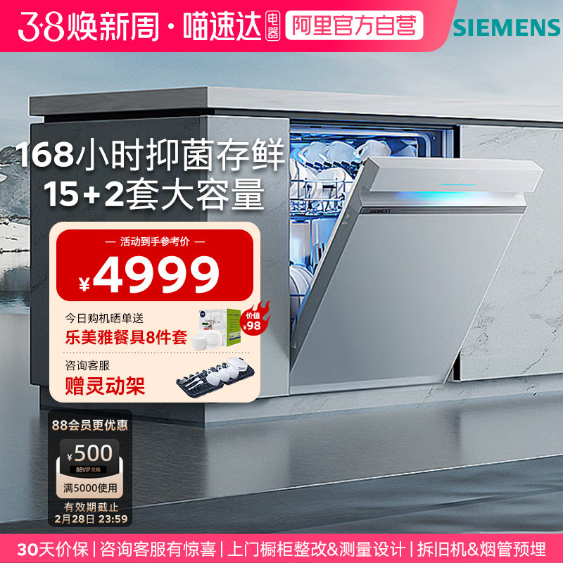 【自营】西门子极净魔盒2.0嵌入式15套+2洗碗机自动除菌EW88 33
