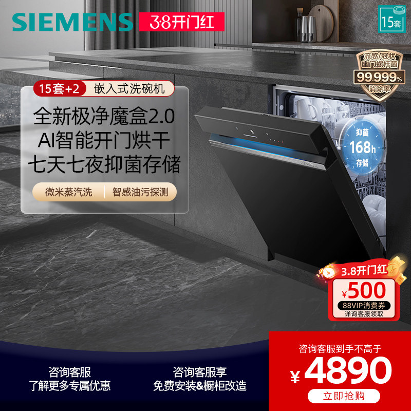 【政府补贴20%】西门子极净魔盒2.0嵌入式智能洗碗机15+2套消毒