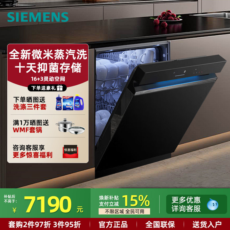 西门子全能舱16套独立嵌入式洗碗机家用全自动除菌消毒官方HB88