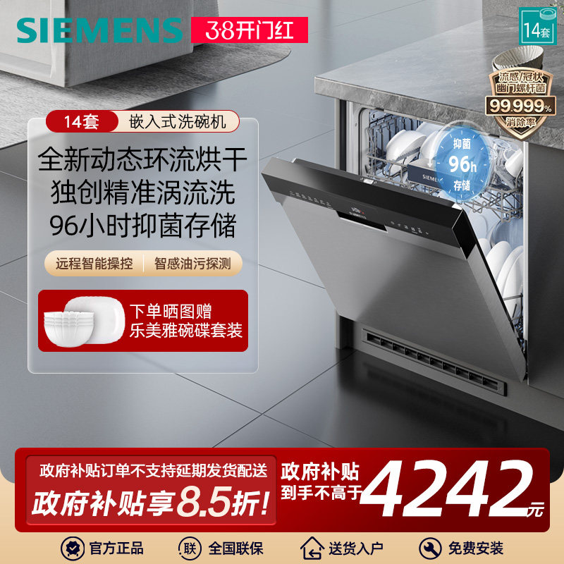 【政府补贴20%】西门子14套嵌入式智能洗碗机甲流病毒消杀S23