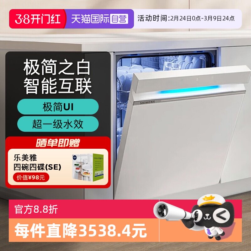 西门子极净魔盒14+2套嵌入式家用全自动除菌洗碗机官方SJ43XW33KC