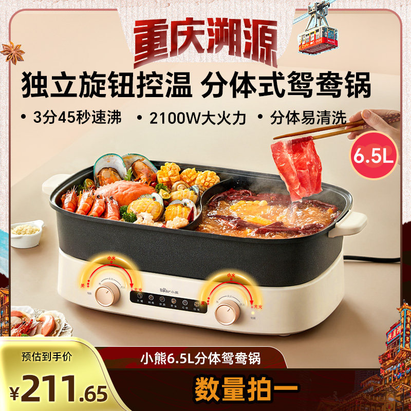 小熊叠叠锅火锅分体式鸳鸯大容量电火锅家用电锅电炒锅电热电煮锅