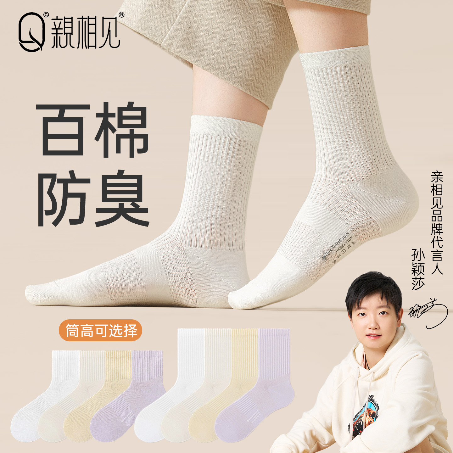 袜子女款纯棉中筒袜春秋季2025新款爆款防臭吸汗无骨白色女士短筒
