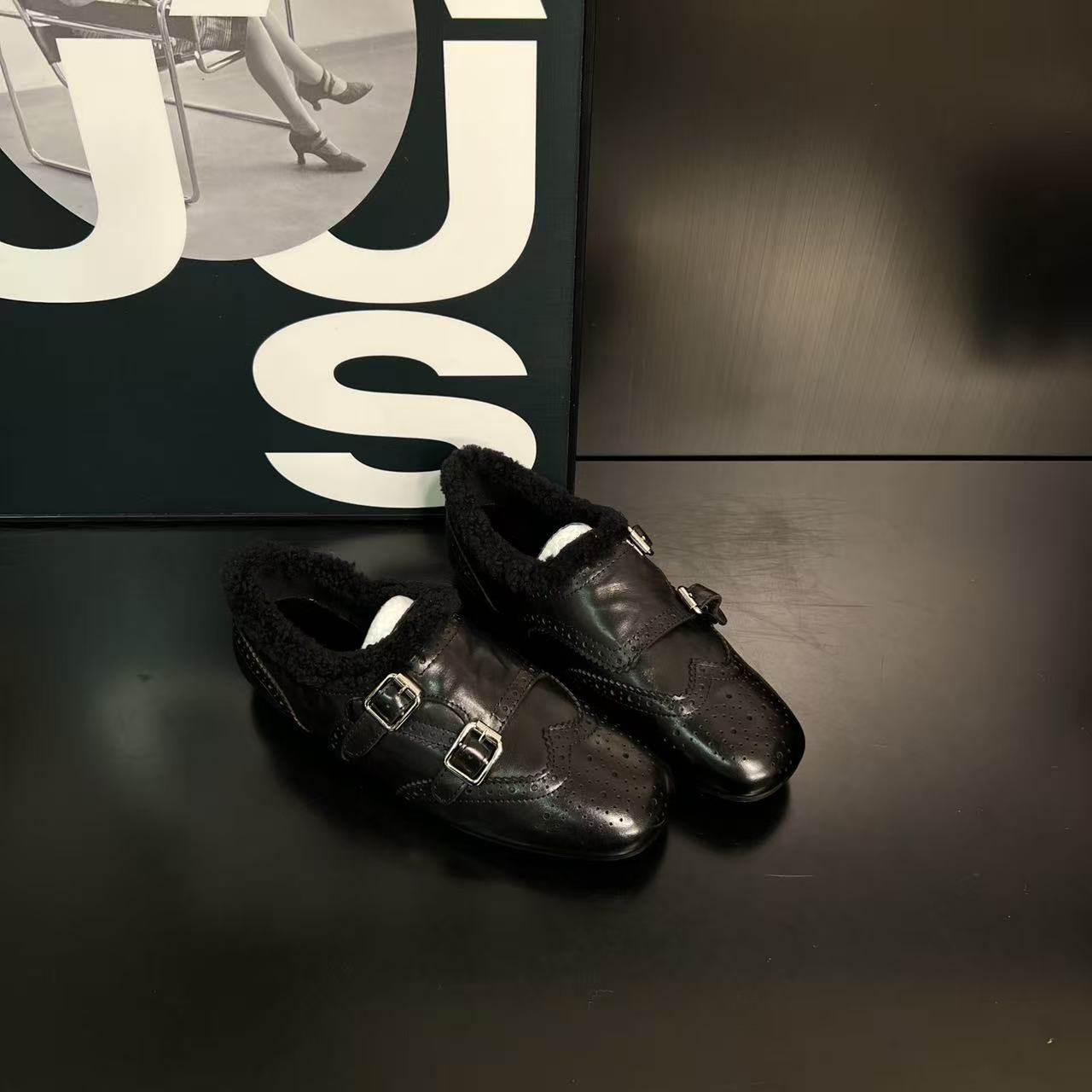 小牛皮~老钱风布洛克雕花孟克鞋加绒平底超软乐福鞋英伦风小皮鞋