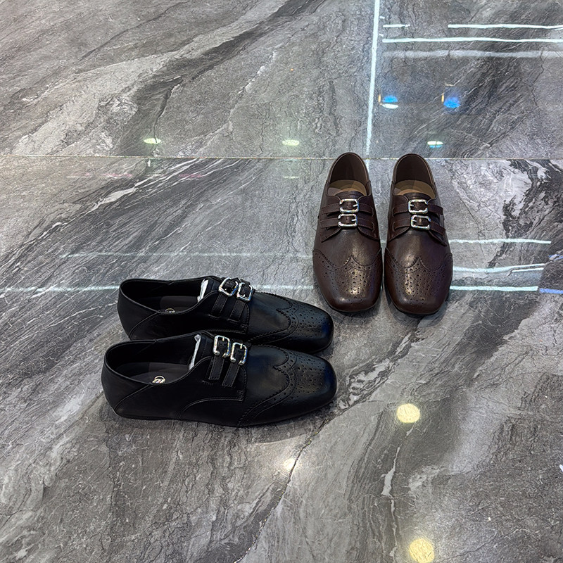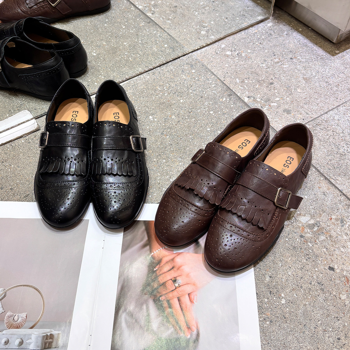 2025新款胎牛皮布洛克金属扣JK小皮鞋乐福鞋单鞋平底百搭时髦女鞋