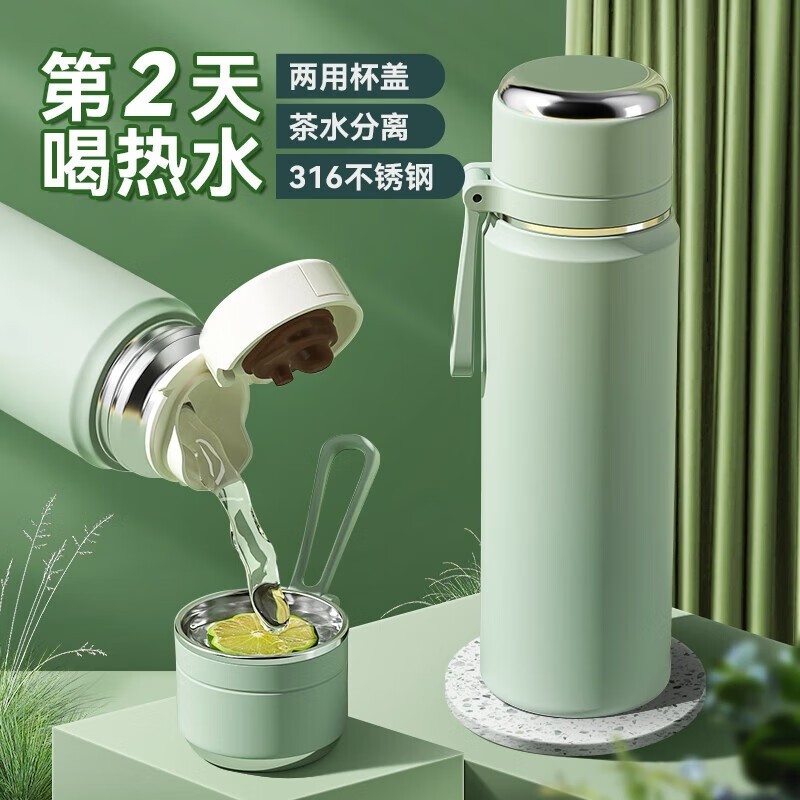 MOMO泡茶保温杯女士带茶隔车载便携316不锈钢男款高档水杯子养生