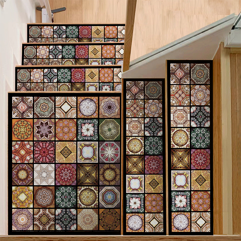 速发美式复古摩洛步花砖防滑自胶免粘楼梯踏哥垫子可擦洗皮革地毯