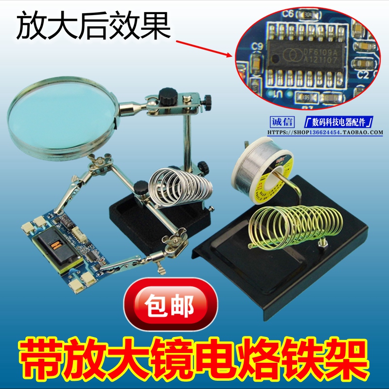 金属优质电烙铁架子焊台座子带夹子放大镜带镜片洛铁焊接焊丝支架