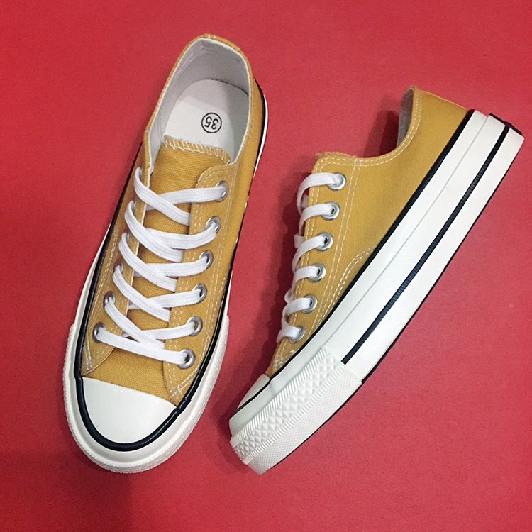 韩1970姜黄色帆布鞋女ulzzang复古原宿百搭学生布鞋ins超火板鞋女