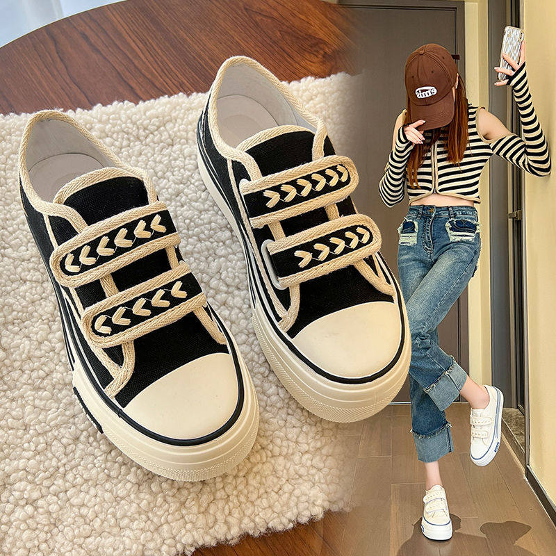 爆品2025新款魔术贴麦穗帆布鞋女ulzzang百搭休闲ins小众原创港风