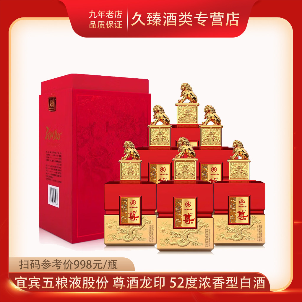 宜宾五粮液股份尊酒龙尊浓香型白酒52度纯粮酿造500ml*6瓶整箱