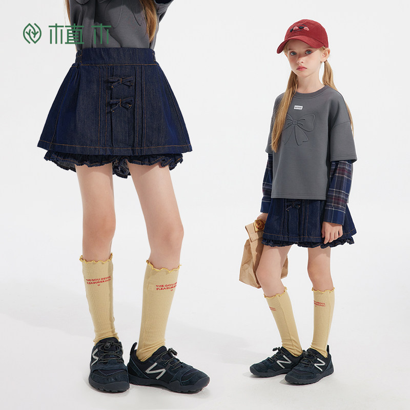 植木童装女童裙子2025秋冬新款中大童甜酷假两件裙裤儿童牛仔半裙