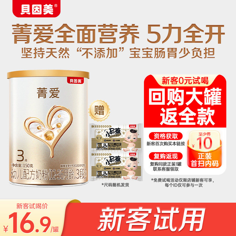 【0元试喝】贝因美菁爱婴幼儿150g奶粉3段试用装 其余段位询客服