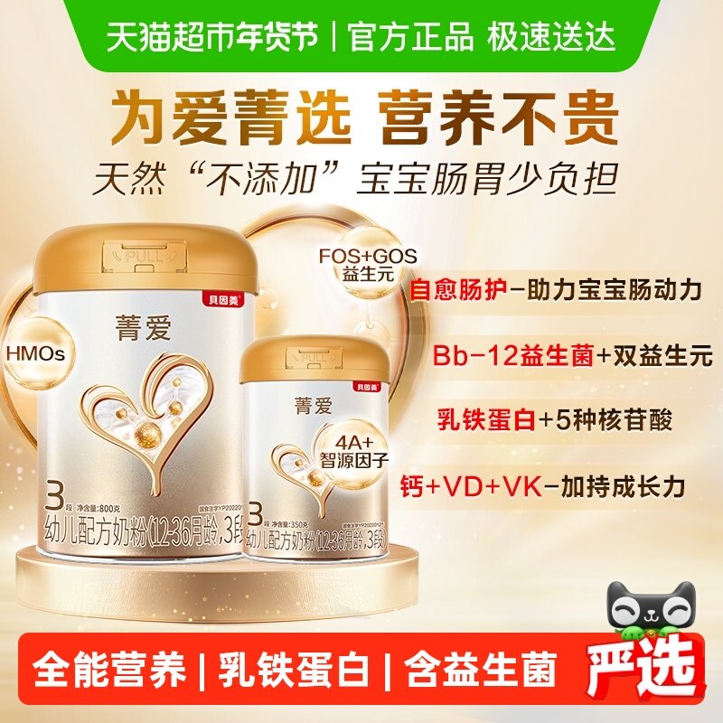 【百亿165/罐】贝因美菁爱幼儿配方奶粉3段800克旗舰店官网