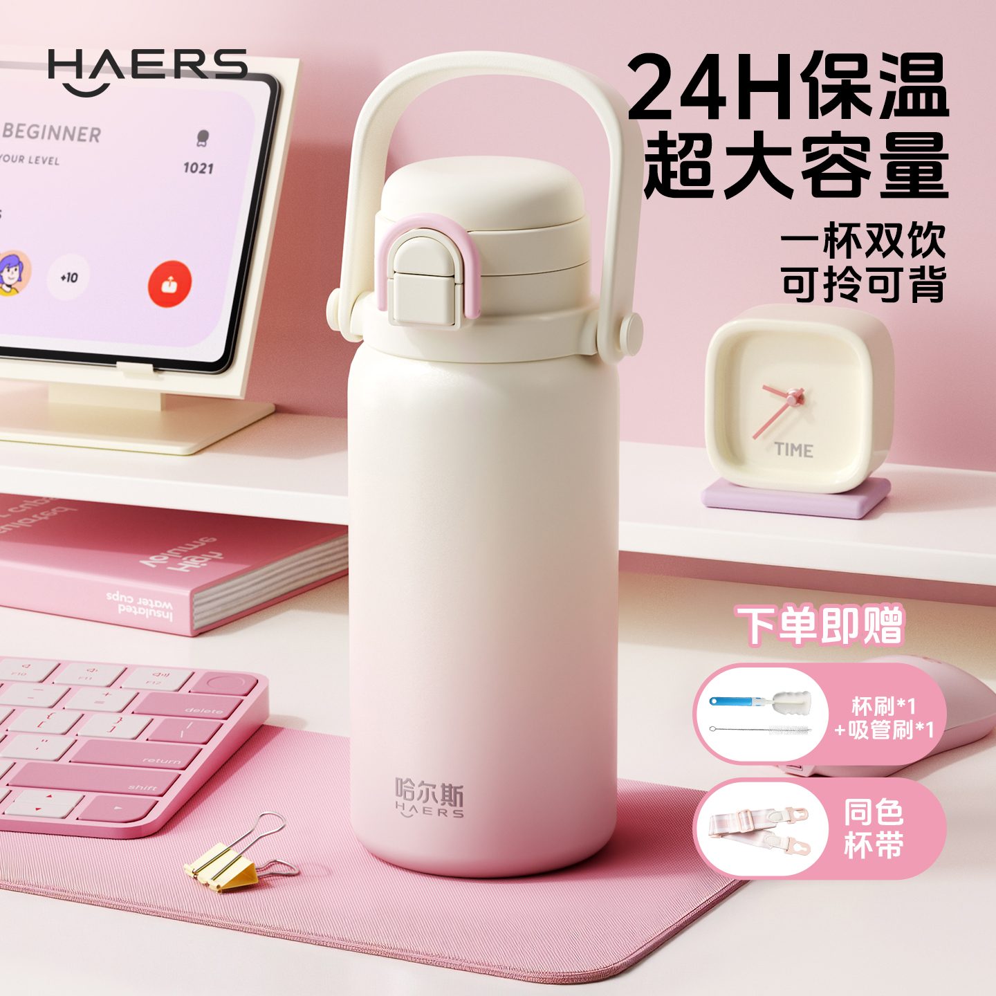 哈尔斯保温杯吸管水杯儿童大容量杯子女生高颜值学生上学专用新款